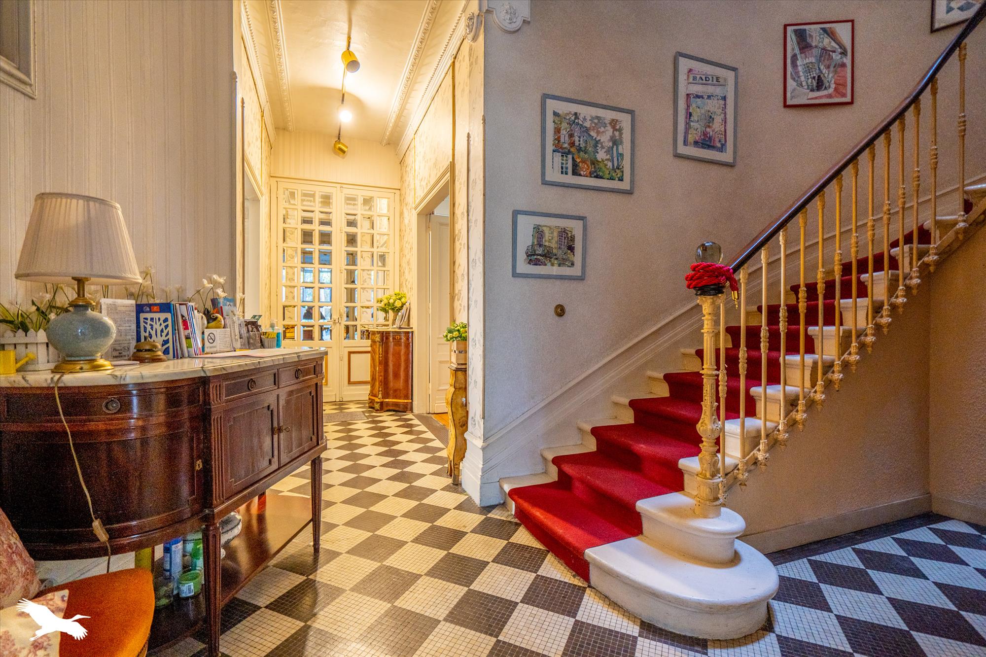 1 795 000 € HAI Ref 1-787 Nous contacterDans l’un des quartiers les plus prisés de Bordeaux, cette élégante demeure de 525 m² dont 430 m² habitables séduit par ses volumes, sa lumière et son jardin paysager de 355 m² orienté ouest. Vastes pièces de réception aux prestations anciennes conservées (moulures, cheminées et vitraux), 7 à 9 chambres selon aménagement, plusieurs salles d’eau, cuisines, combles aménagés et cave voûtée transformée en espace convivial. Ce bien rare est idéal pour une vie de famille raffinée, une activité libérale ou un projet de maison d’hôtes de charme. Possibilité d'acquisition d'un parking en supplément à proximité.