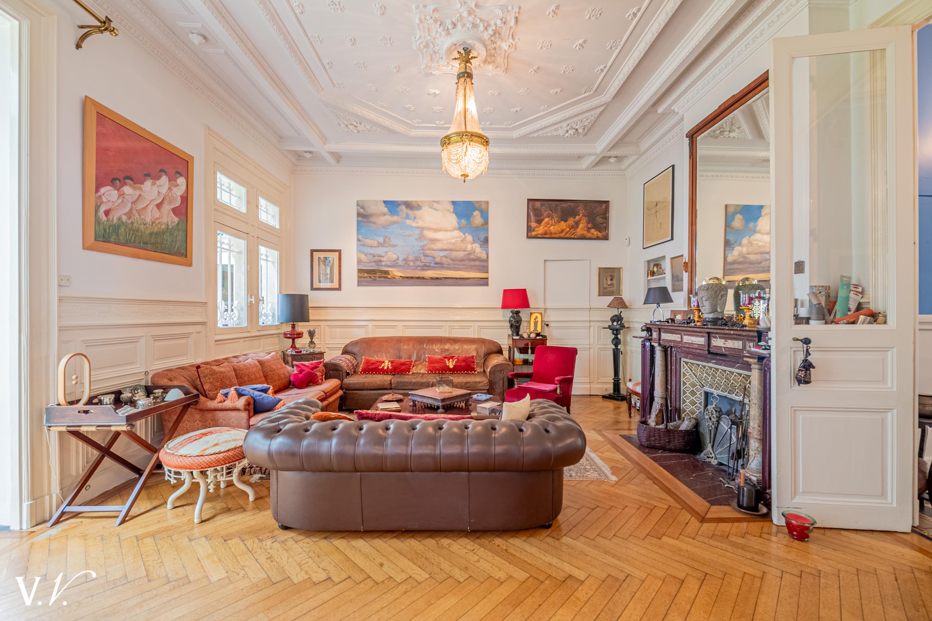 1 870 000 € HAI Ref 1-805 Nous contacterSomptueuse demeure du XIXème siècle d'environ 300m2. Edifiée sur un parc paysager de plus de 1000m2, cette maison de maître allie authenticité et raffinement avec ses vitraux, moulures sculptées, cheminées d'époque, parquet point de Hongrie et carreaux de ciment d'origine. Vaste hall, bibliothèque, salons d'apparat, salle à manger, bureau, cuisine équipée, 4 à 5 chambres dont une somptueuse suite parentale, 1 salle de bains et 2 salles d'eau. Très beau jardin avec piscine, pool house et aire de stationnement. Proximité immédiate des écoles de renom, commerces et transports. Bien historique et de caractère. Charme, confort et élégance.