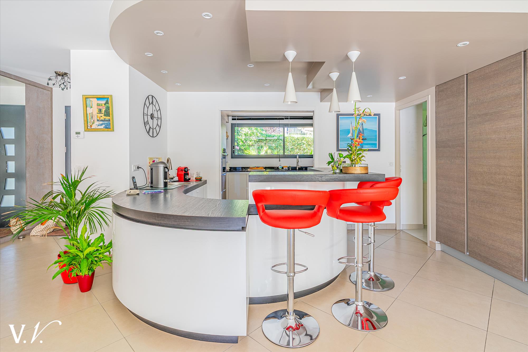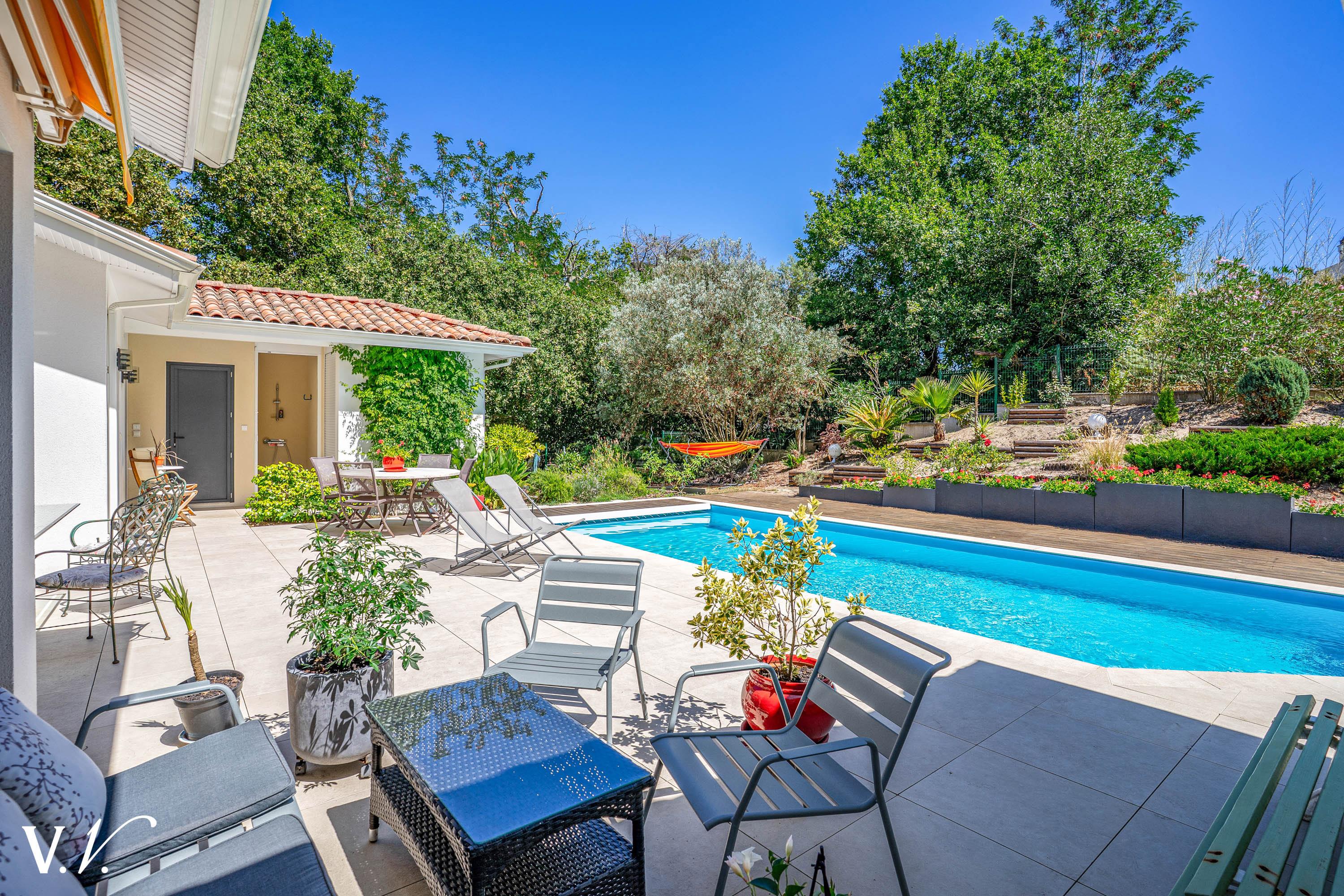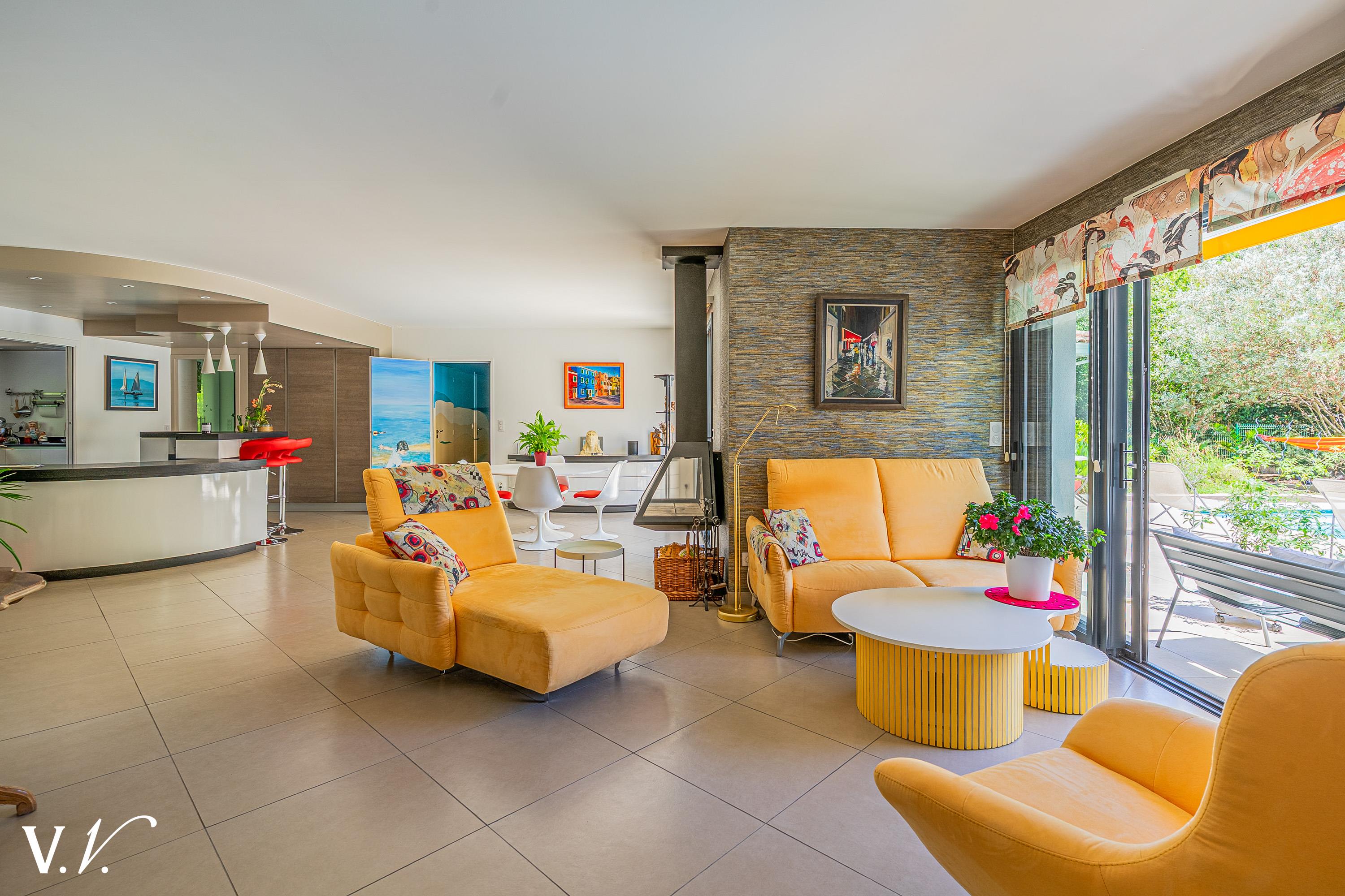 2 090 000 € HAI Ref 2-870 Nous contacterA seulement 5 minutes à pied de la plus belle plage d'Arcachon, dans un quartier ultra prisé, se cache une adresse rare. Sur un grand terrain, cette maison de plain pied déploie 210m². L'espace de vie baigné de soleil avec vue directe sur la piscine et le jardin exposé plein sud s'étire sur près de 60m² . Coté nuit 1 master suite de 25 m² intime et bien conçue, 2 chambres avec salle de bain partagée et wc indépendant. Et un atelier de 25 m² ou vous pouvez imaginer une quatrième suite parentale. Une arrière cuisine fonctionnelle, un grand garage et de nombreux rangements complètent ce bien aussi pratique que séduisant. L'adresse cachée dont vous révez.