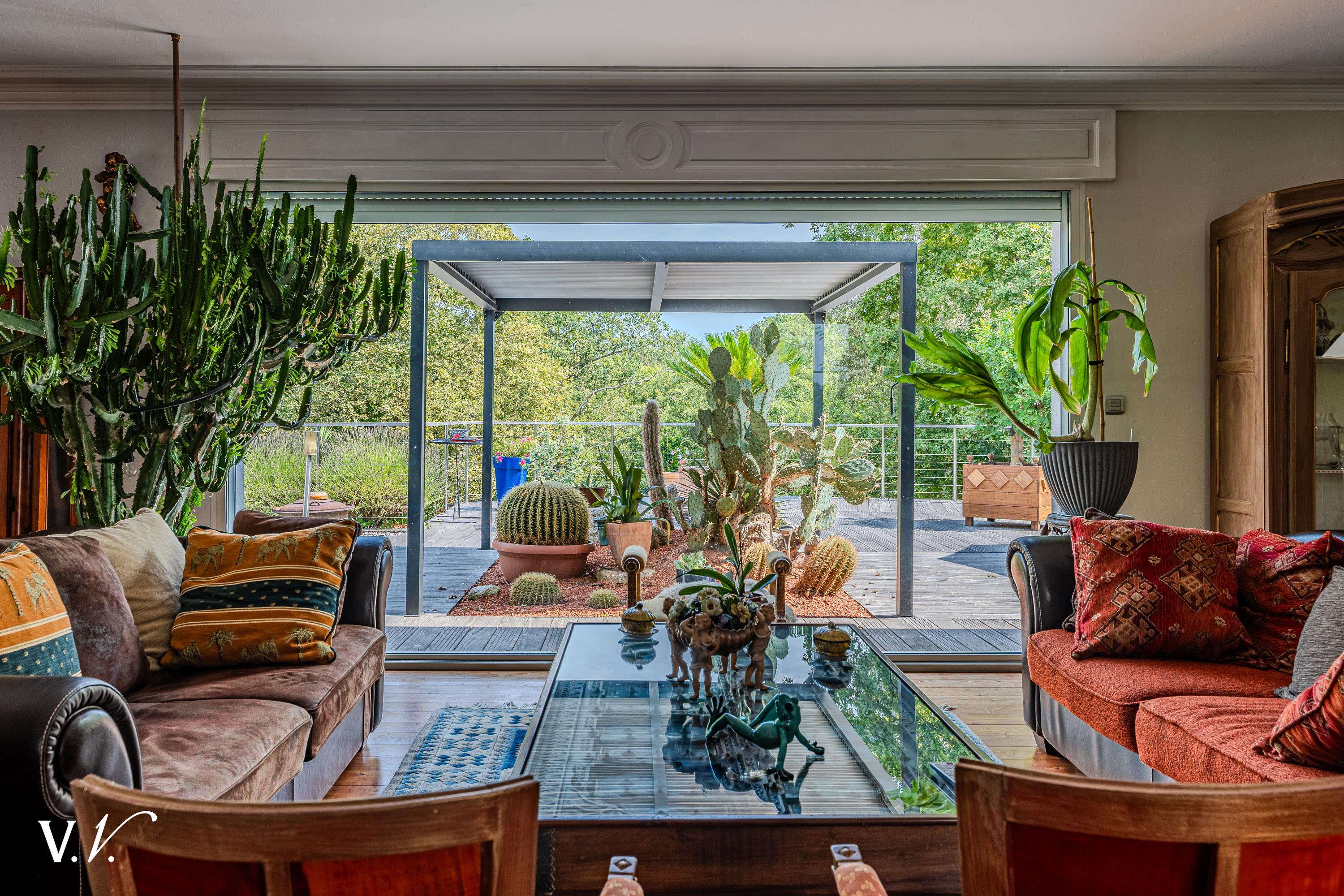 1 358 000 € HAI Ref 2-880 Nous contacterImaginez un lieu où le calme est une évidence. Au cœur d'un parc de 1,3 hectare avec son étang privé, cette villa récente de 270 m² est une invitation à la détente. Derrière ses grandes baies vitrées, le quotidien prend des airs de vacances : Un séjour de 80 m², une cuisine de 30 m² pensée pour nourrir les grandes tablées, une cuisine d’été de 50 m² au bord de la piscine chauffée. Une suite parentale au rez-de-chaussée. À l’étage, 3 chambres, salle d’eau, une seconde master suite. Et ce n’est pas fini…Une dépendance accueille salle de sport et hammam. Une grange. Un garage. Un bien rare à mi-chemin entre maison de famille et lieu de villégiature