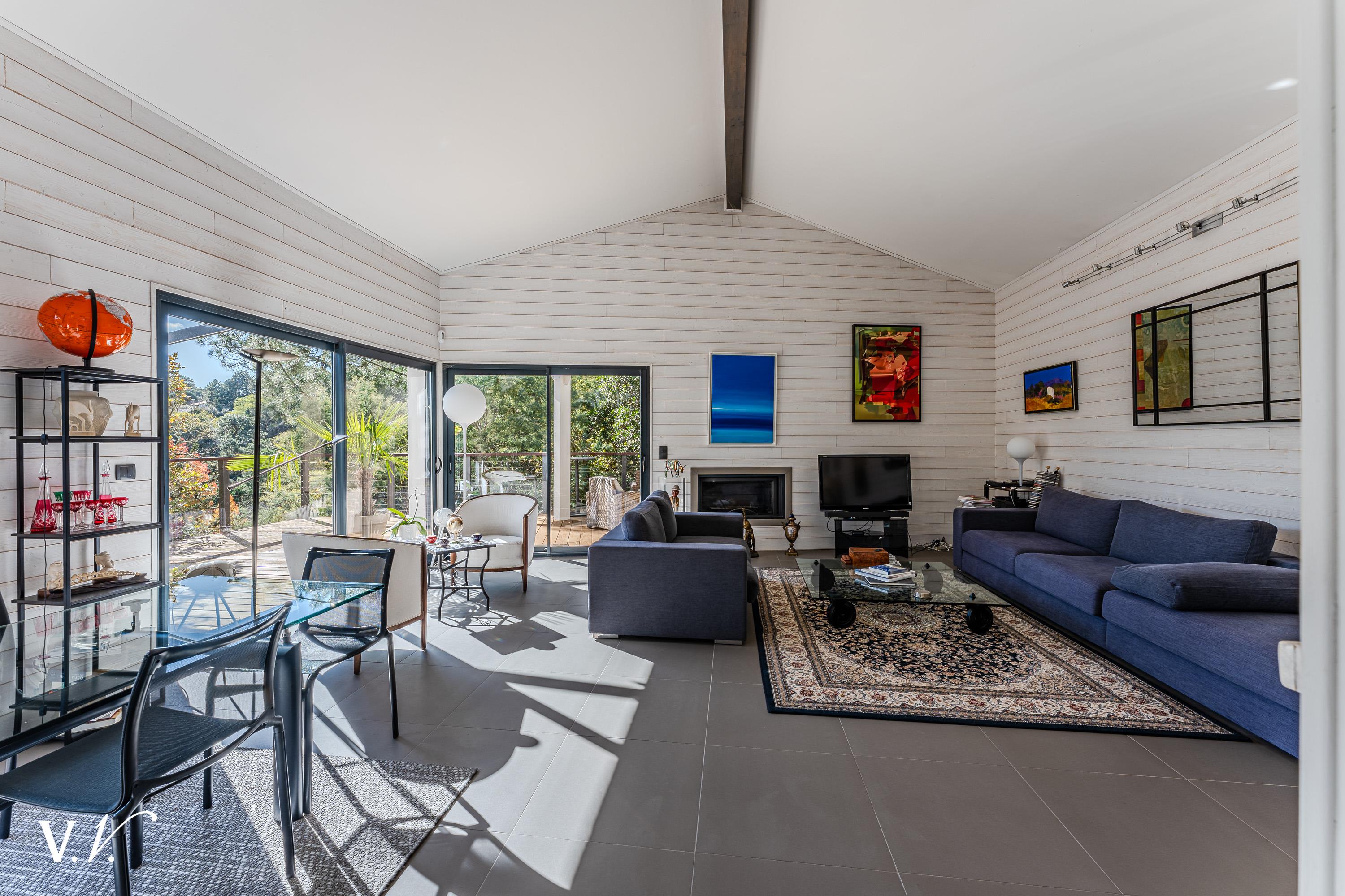 1 620 000 € HAI Ref 2-898 Nous contacterCette villa située à seulement 5 minutes à pied des commerces des Abatilles offre un cadre de vie exceptionnel. Depuis sa grande terrasse au sud vous profiterez d'un panorama sur la forêt à couper le souffle. Construite sur deux niveaux, la maison a été conçue pour profiter de l'extérieur depuis chaque pièce : le grand séjour très lumineux, la cuisine, la master suite ainsi que les trois chambres ouvrent directement sur des jolies terrasses aménagées. Les équipements; cheminée, pergola bioclimatique, grandes baies vitrées, climatisation, cuisine de cuisson et le volume des pièces assurent un confort et un art de vivre particulièrement agréable.