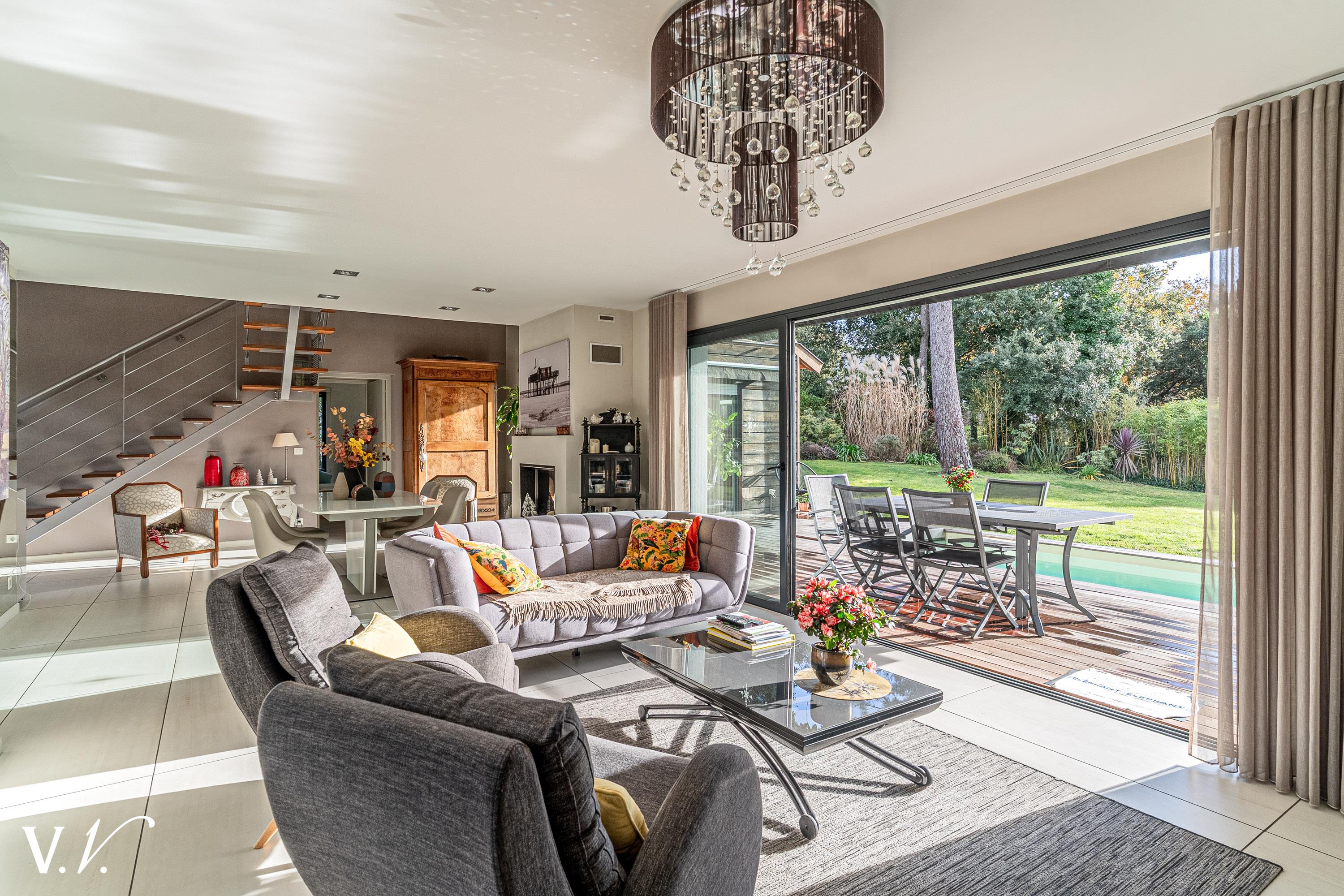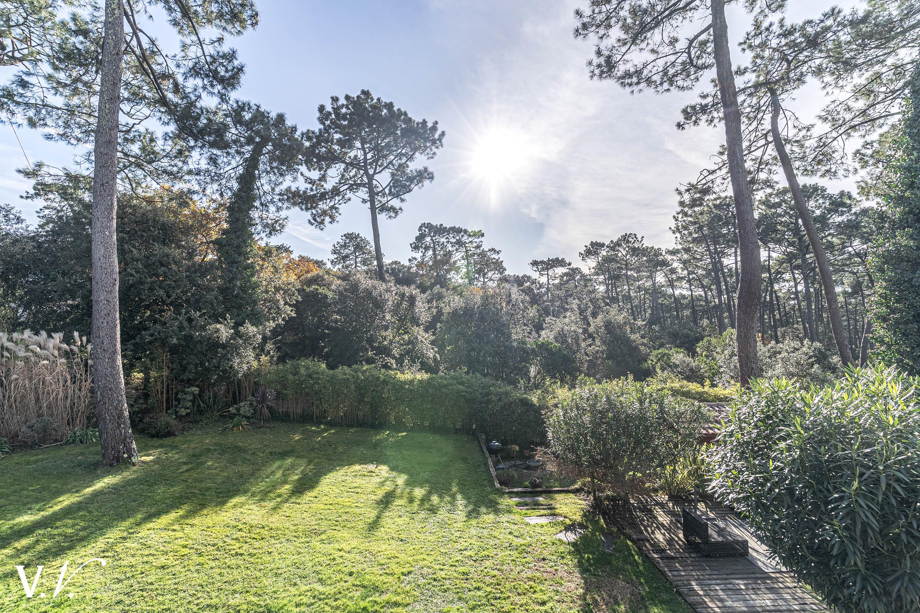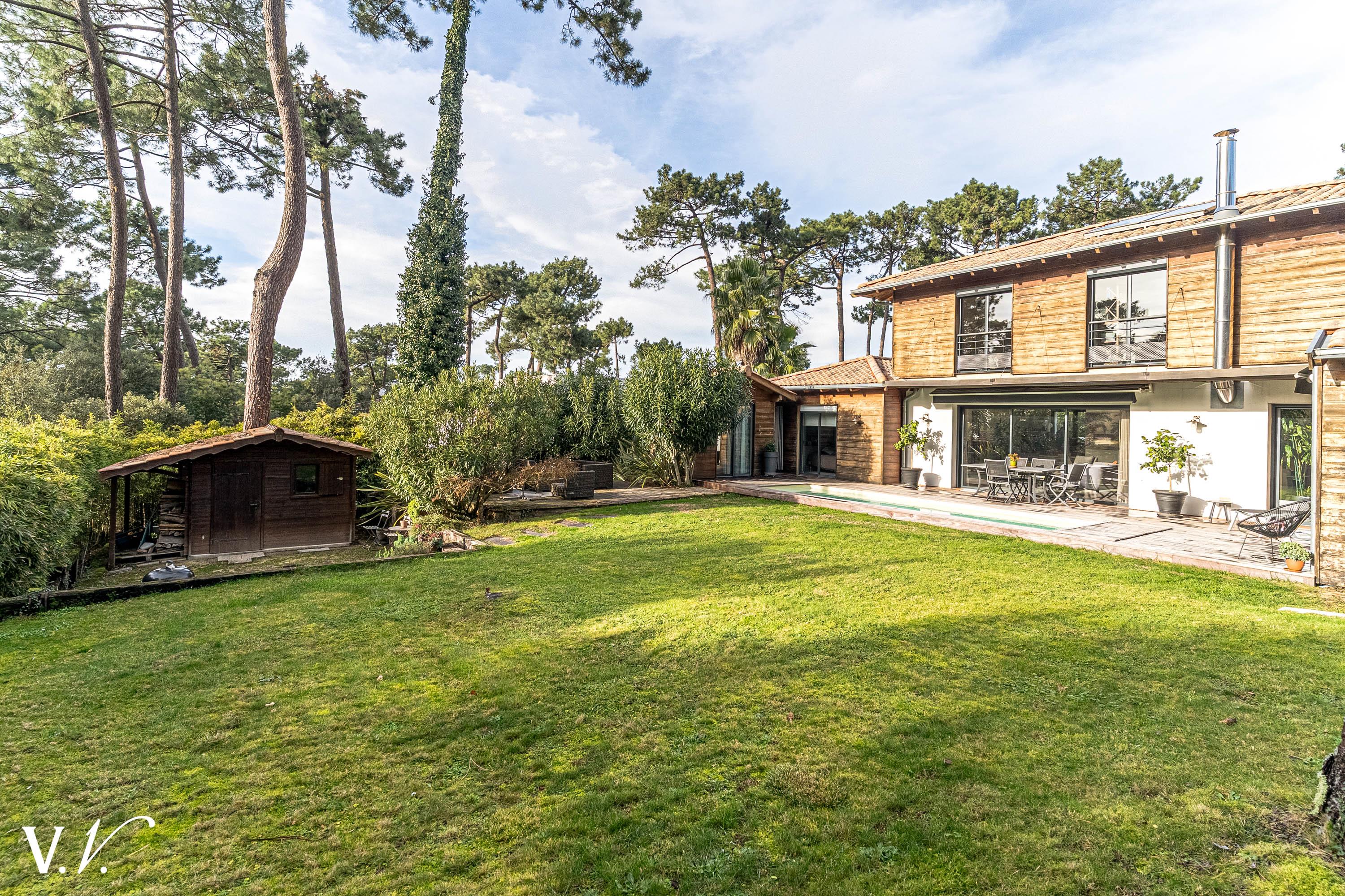 2 280 000 € HAI Ref 2-919 Nous contacterImplantée sur une grande parcelle arborée, entièrement tournée vers la forêt, cette villa d’architecte bénéficie d’un environnement rare, à l’abri des regards, tout en restant à quelques pas des commerces. Les espaces de vie, largement ouverts sur l’extérieur, profitent pleinement de ce cadre naturel privilégié. La maison offre cinq grandes chambres avec salle d’eau, un vaste séjour avec cuisine ouverte, ainsi que des prestations complémentaires telles qu’une cave, un pool-house, un boulodrome et un abri de jardin. Un bien unique où l’espace, la nature et la tranquillité sont au cœur du projet.