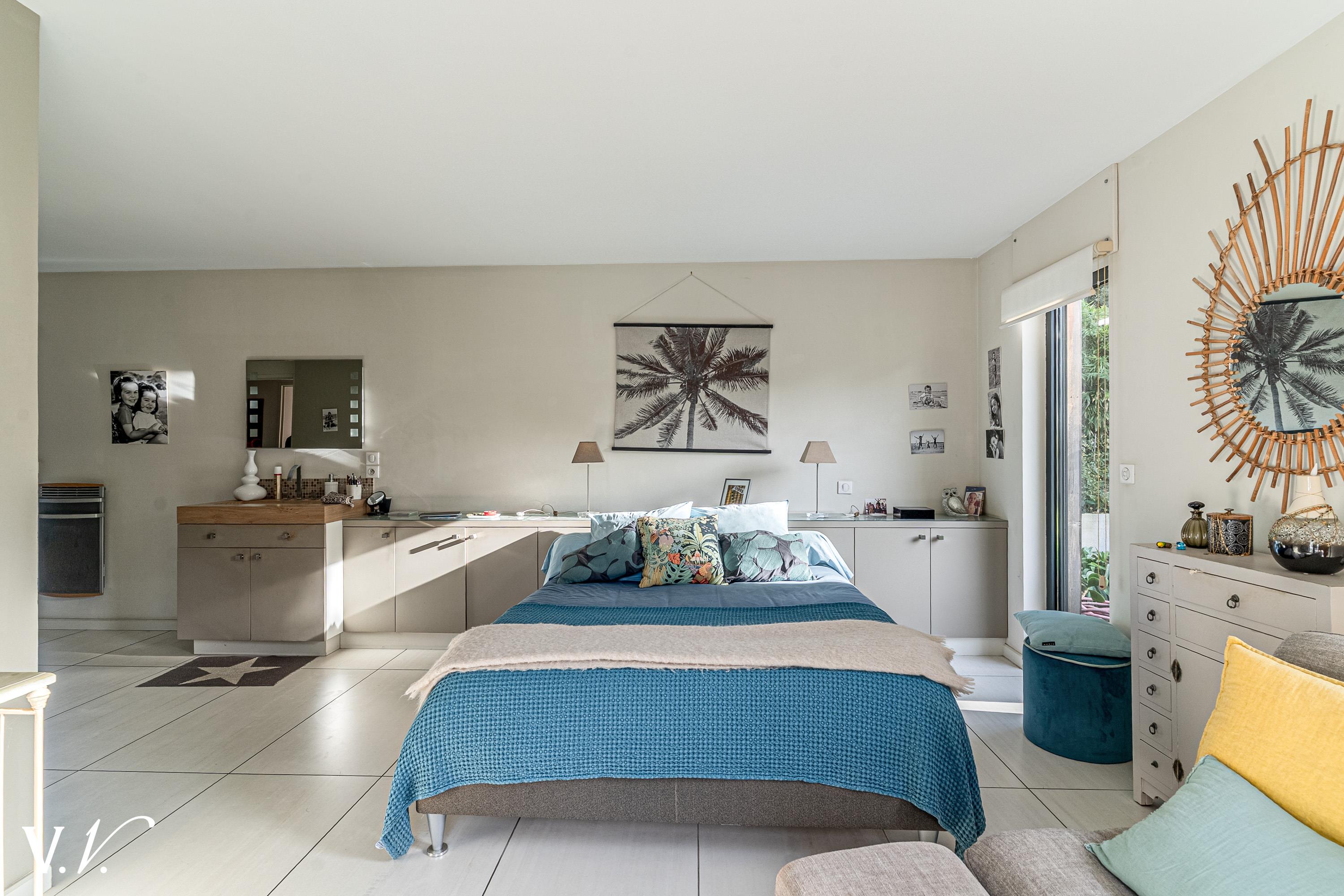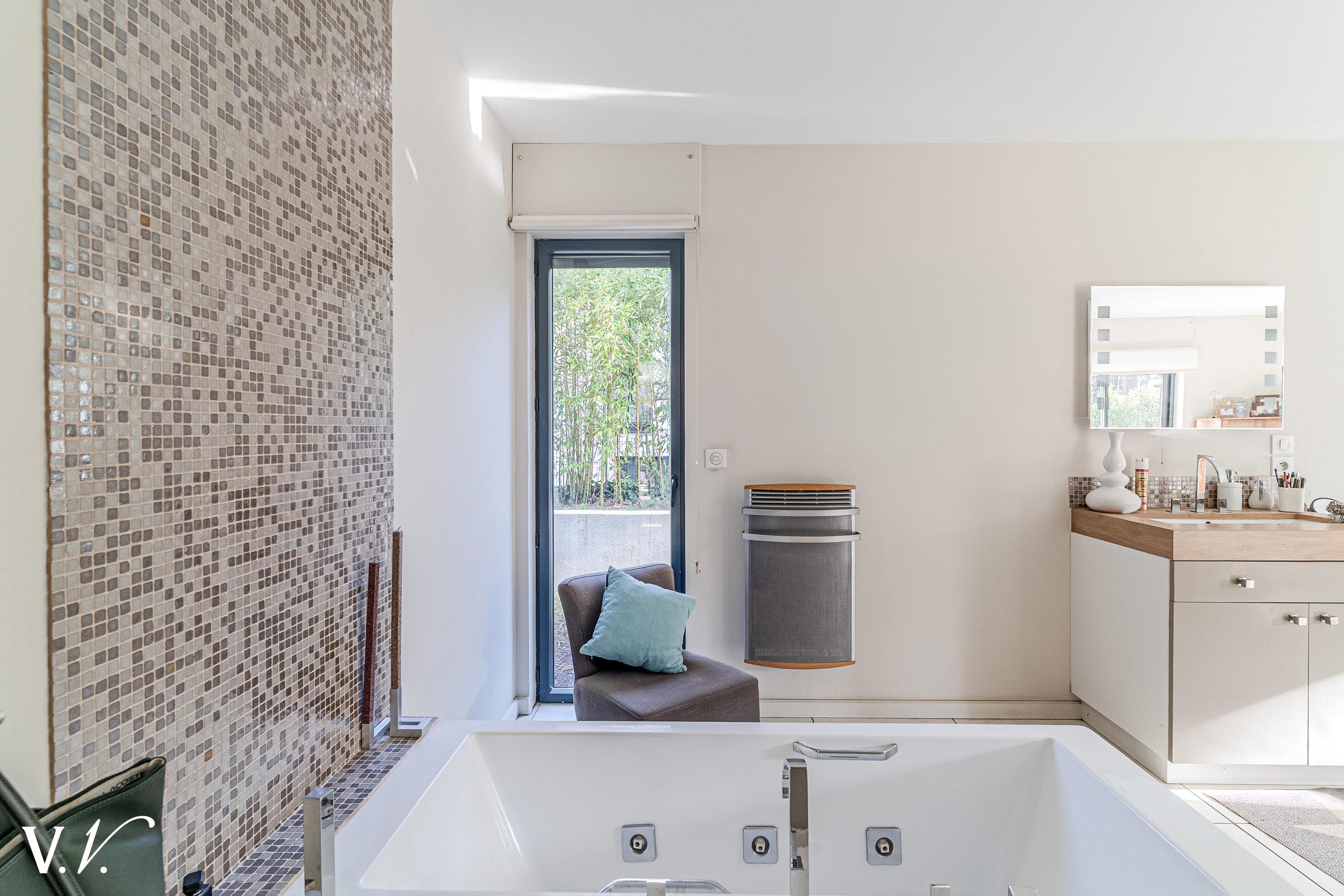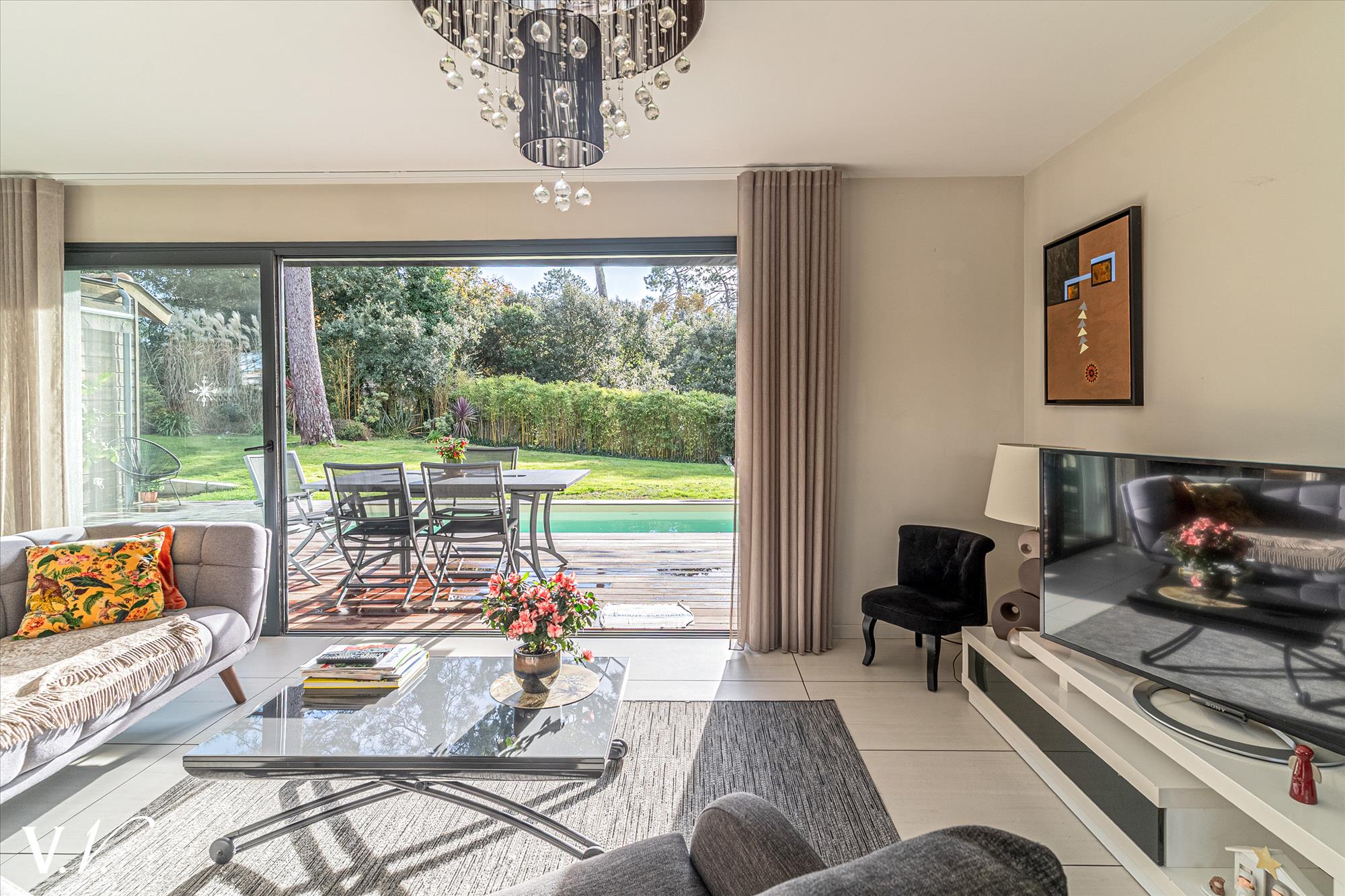 2 280 000 € HAI Ref 2-919 Nous contacterImplantée sur une grande parcelle arborée, entièrement tournée vers la forêt, cette villa d’architecte bénéficie d’un environnement rare, à l’abri des regards, tout en restant à quelques pas des commerces. Les espaces de vie, largement ouverts sur l’extérieur, profitent pleinement de ce cadre naturel privilégié. La maison offre cinq grandes chambres avec salle d’eau, un vaste séjour avec cuisine ouverte, ainsi que des prestations complémentaires telles qu’une cave, un pool-house, un boulodrome et un abri de jardin. Un bien unique où l’espace, la nature et la tranquillité sont au cœur du projet.
