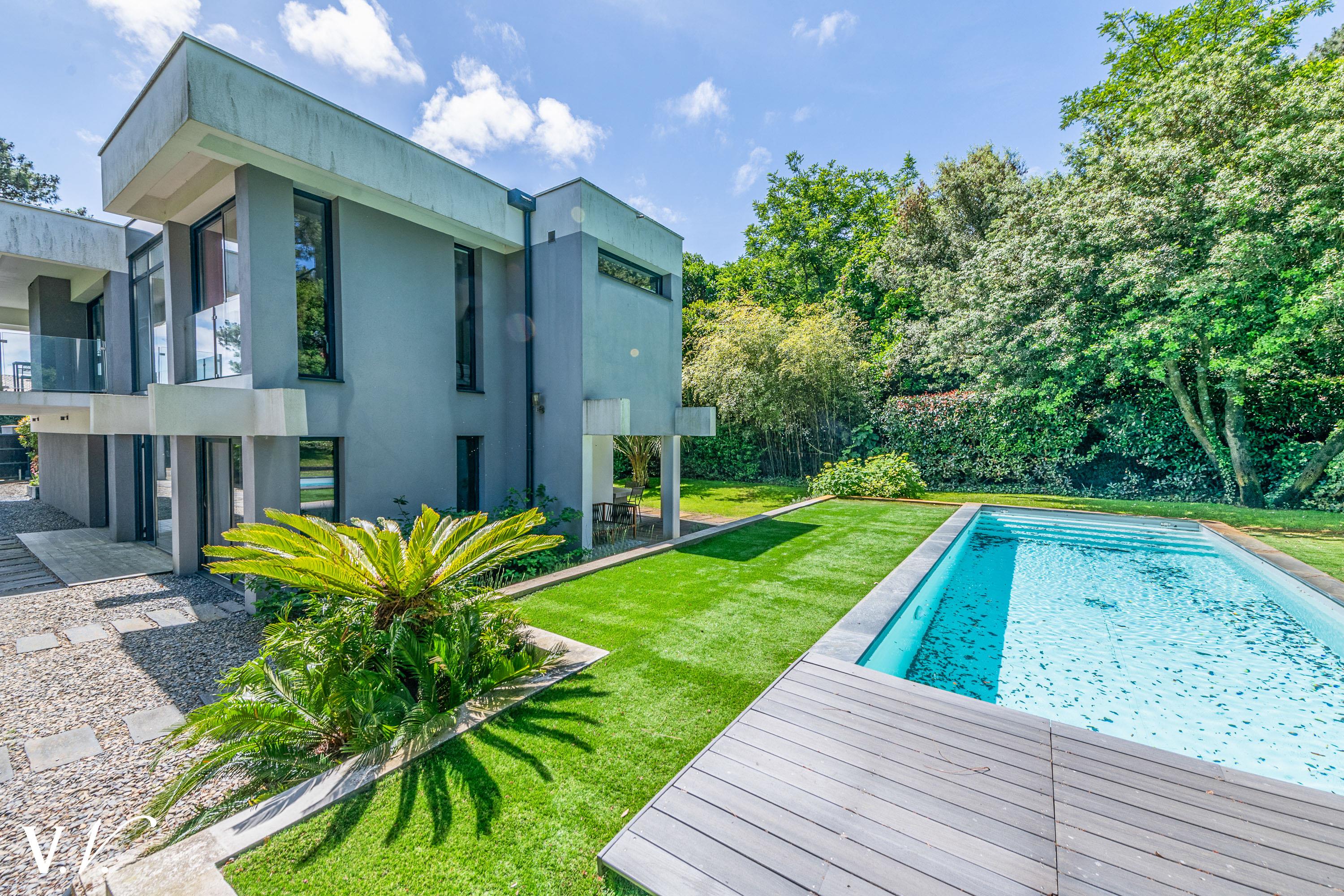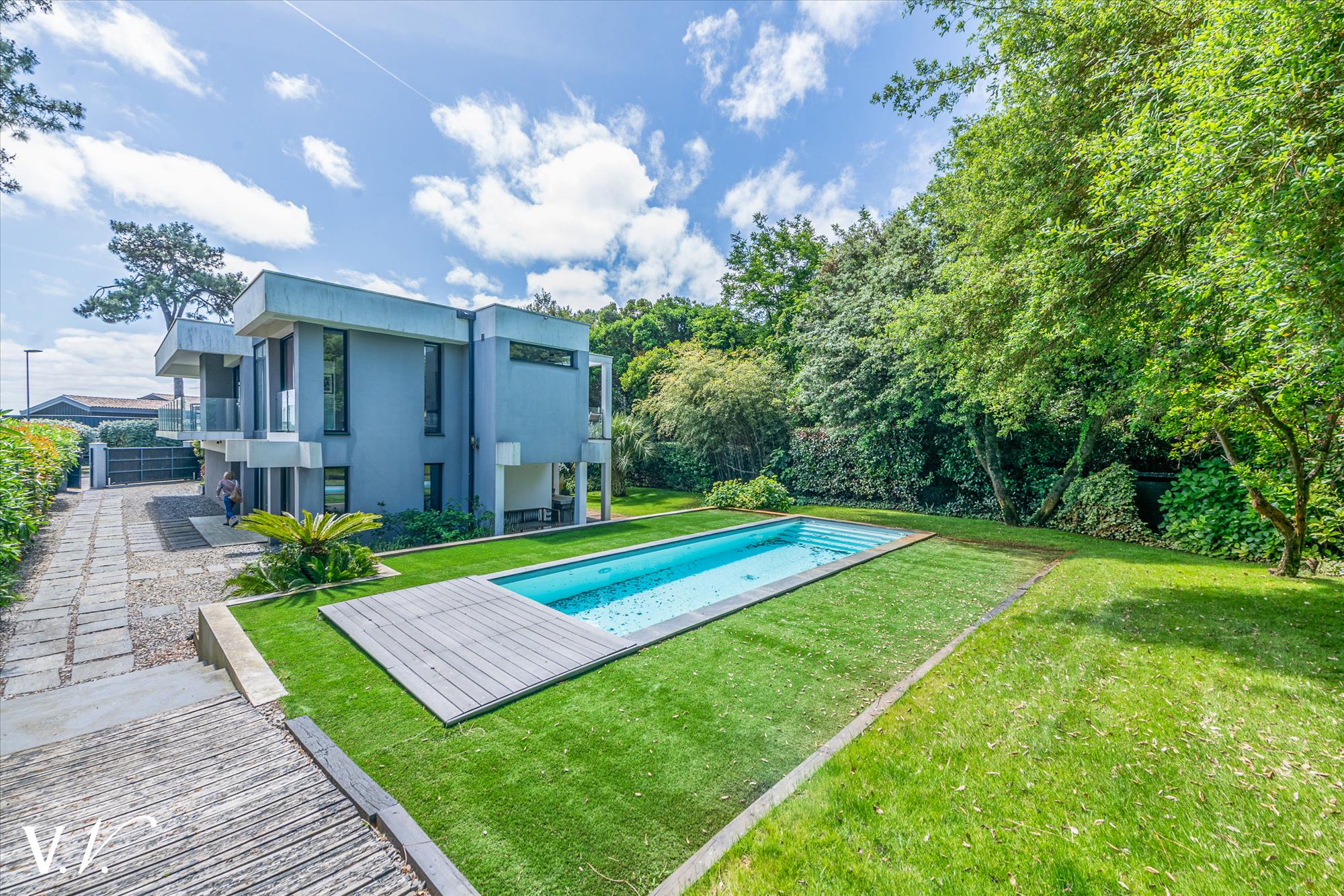 3 952 000 € HAI Ref 3-271 Nous contacterL'agence Une Villa et des Vignes au Cap Ferret vous propose cette superbe villa contemporaine avec sa vue panoramique. A l'abri des regards, dans un cadre luxuriant, cette villa contemporaine d'une surface habitable de 300m², édifiée sur deux niveaux est composée de sept chambres, chacune avec son point d'eau ainsi que de nombreuses terrasses avec vue sur le Bassin. Côté jardin, le terrain de plus de 1000m2 entièrement plat et arboré offre tout le confort et fait de cette maison un véritable havre de paix avec sa piscine extérieure, cuisine d'été, pool house. Bien d'exception vendu meublé, rare sur le marché.