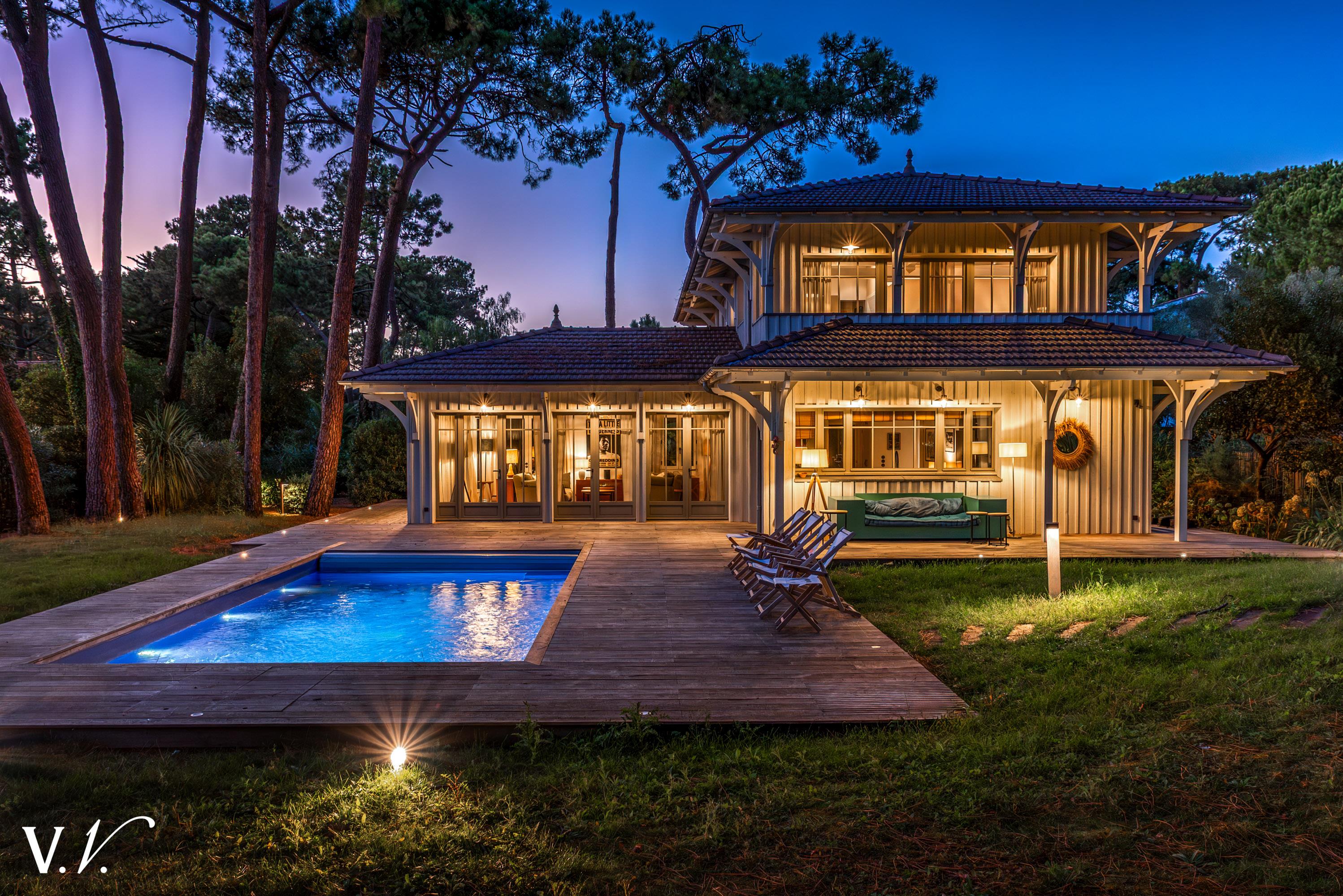 3 890 000 € HAI Ref 3-315 Nous contacterL’agence Une Villa et des Vignes au Cap Ferret vous propose, dans le secteur prisé de la Dune du Canon, la villa Eole. Vous profiterez au rez-de-chaussée d'une immense pièce de vie baignée de lumière, prolongée par sa cuisine américaine moderne et ouverte, une buanderie séparée ainsi que deux chambres avec salles d'eau. A l'étage, une fabuleuse suite parentale bénéficie d'une terrasse ensoleillée avec vue sur son magnifique jardin verdoyant et plusieurs autres chambres avec salles d'eau. Son jardin vous séduira par ses nombreuses essences végétales. Ce bien est un vrai havre de paix, au calme, à l'abri des regards indiscrets et proche de toutes commodités..