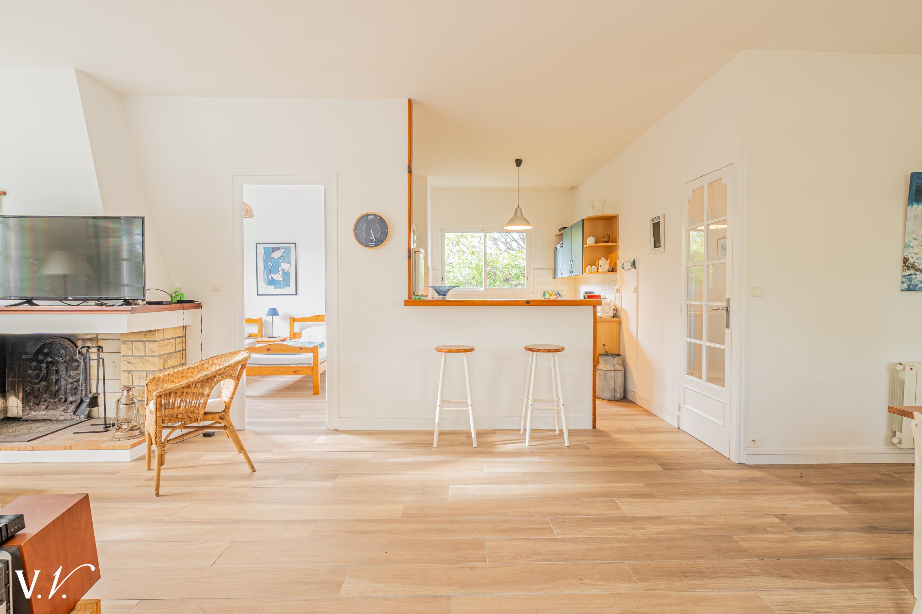 1 700 000 € HAI Ref 3-384 Nous contacterUne Villa et des Vignes vous propose à la vente dans un secteur recherché du Cap Ferret, à 200m du marché et de toutes commodités, une belle maison familiale à aménager à votre goût. Bonne et solide construction type années 60, la maison est édifiée sur une belle parcelle de 700m². Vous apprécierez son côté intime, sans vis-à-vis, et vues dégagées sans aucune mitoyenneté. La maison vous offre une pièce de vie chaleureuse avec cheminée, une cuisine à moderniser, quatre chambres dont une indépendante, trois salles d'eau et un garage. Produit rare à la vente avec beaucoup de potentiel...