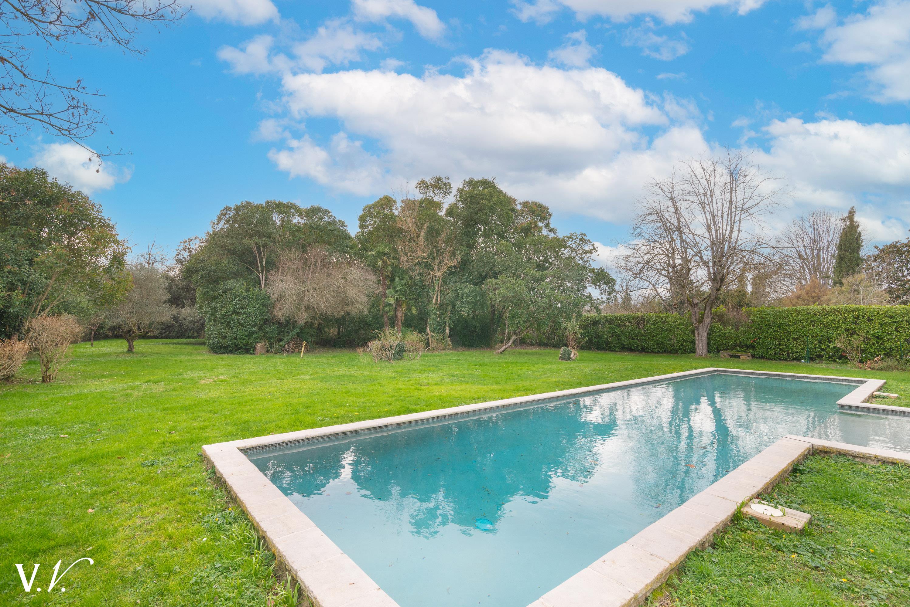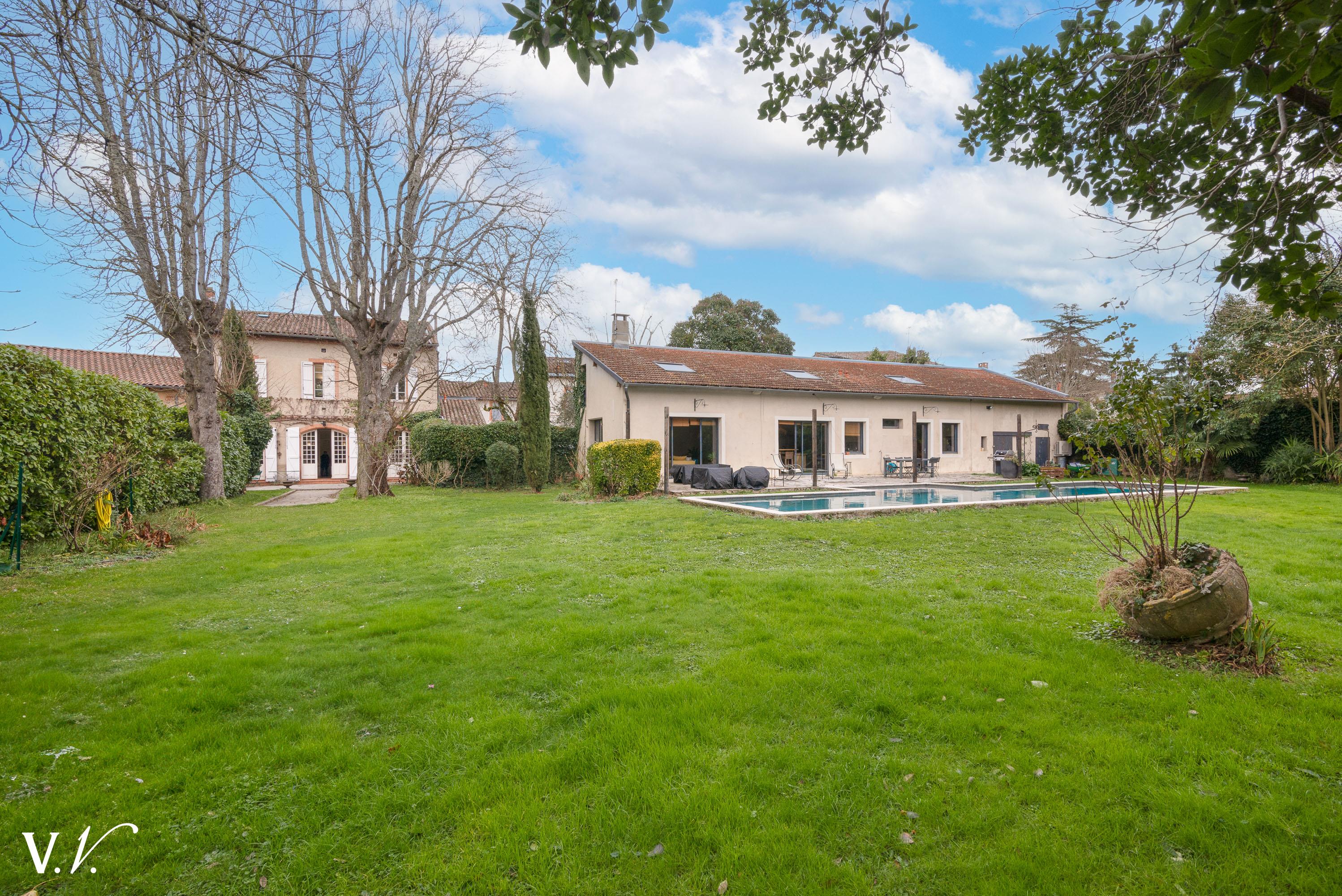 1 190 000 € HAI Ref 4-306 Nous contacterDécouvrez cette belle maison de caractère en plein centre de Pinsaguel, alliant charme et prestations sur un terrain arboré de 3 000 m². Avec environ 360 m² habitables, elle offre 5 chambres spacieuses, un séjour lumineux, un salon convivial, une cuisine équipée, une bibliothèque, une buanderie et un dressing et de nombreux rangements. Un garage de 27 m² complète ce bien d’exception. À l’extérieur, profitez d’un grand poolhouse totalement aménagé comprenant séjour, cuisine et chambre, ainsi qu’une piscine 16x4 pour vos moments de détente avec un bel atelier. Une opportunité rare pour une vie élégante, centralisée et privilégiée !
