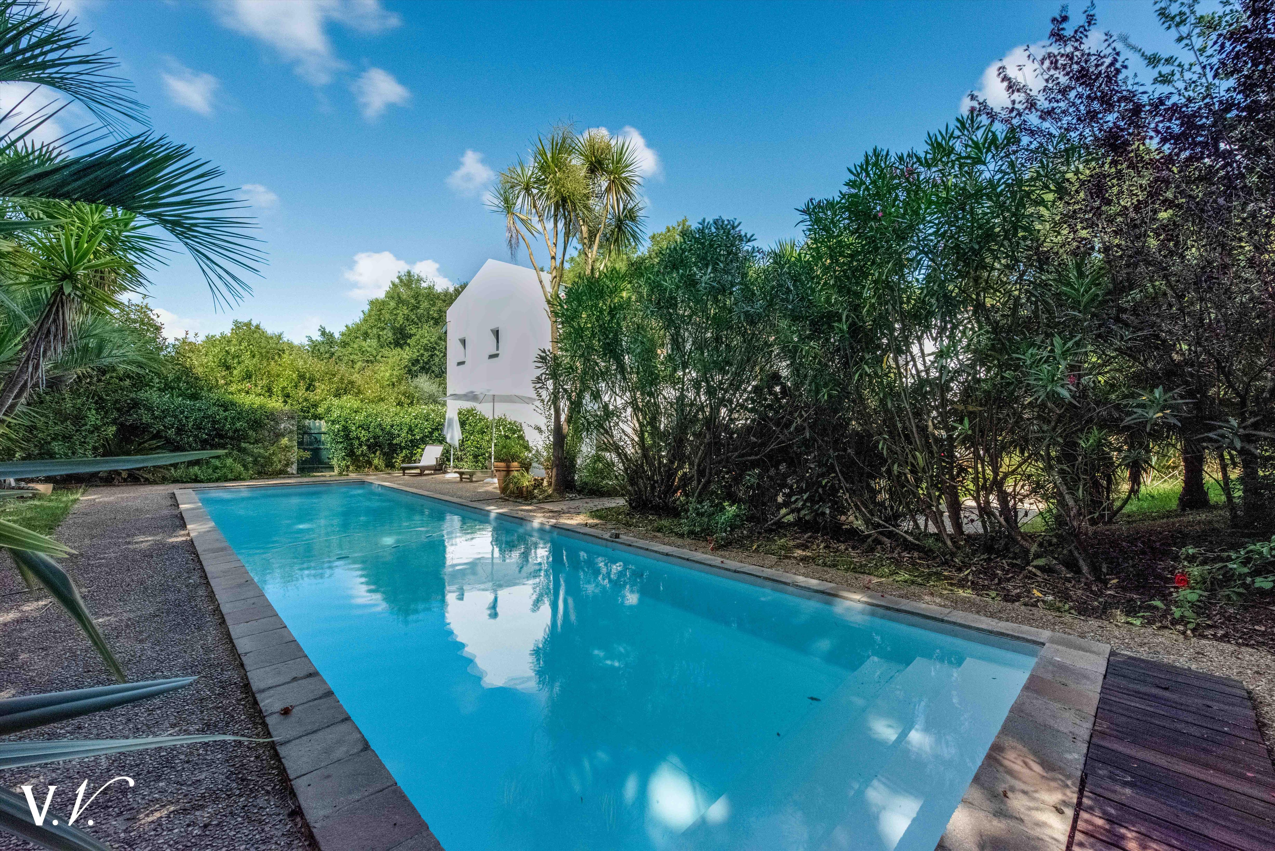 1 670 000 € HAI Ref 5-357 Nous contacterMaison d'envrion 200m² désservant une vaste pièce de vie avec cheminée donnant sur une vaste terrasse ensolleillée, une cuisine indépendante et équipée, une chambre avec sa salle de bain. A l'étage nous retrouvons 2 suites parentales dont 1 avec son dressing et une troisième chambre. 2 espaces faisant office à ce jour d'atelier ou annexe bureau communiquant par l'intérieur mais aussi avec un accès existant depuis l'extérieur. Le tout sur une parcelle de 3471m² paysagée avec sa piscine et studette. Le calme de la nature et la proximité des plages et la possibilté de lier vie familiale et professionnelle sont des atouts considérables.
