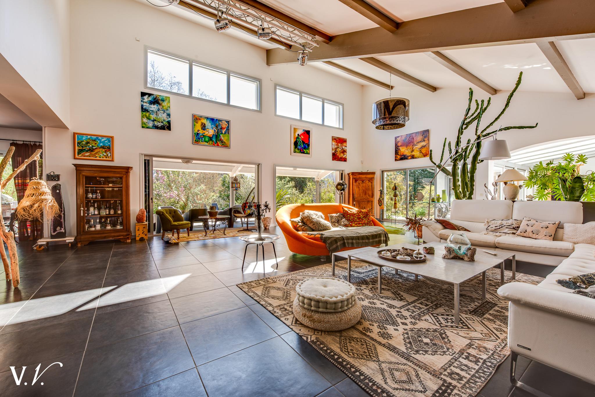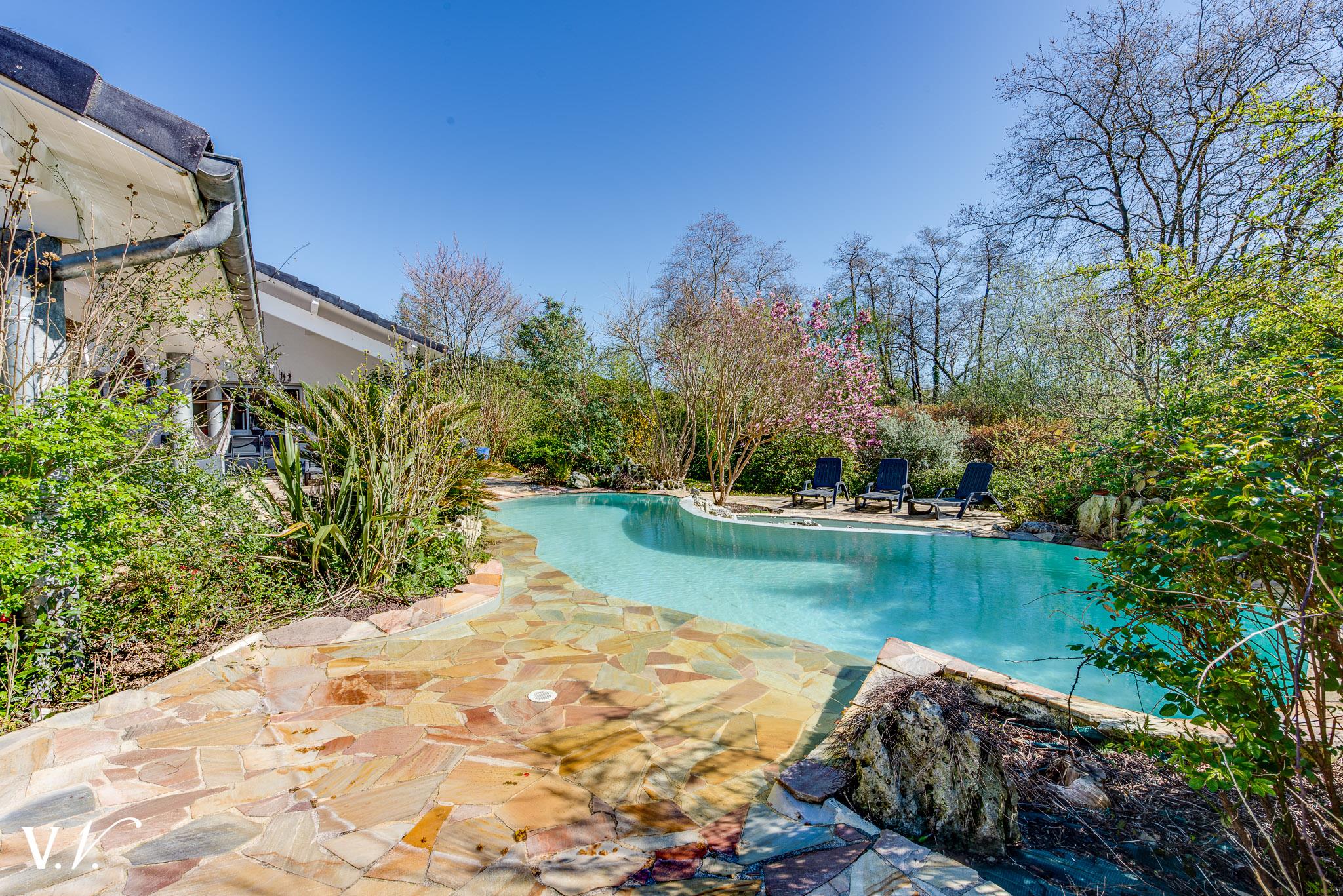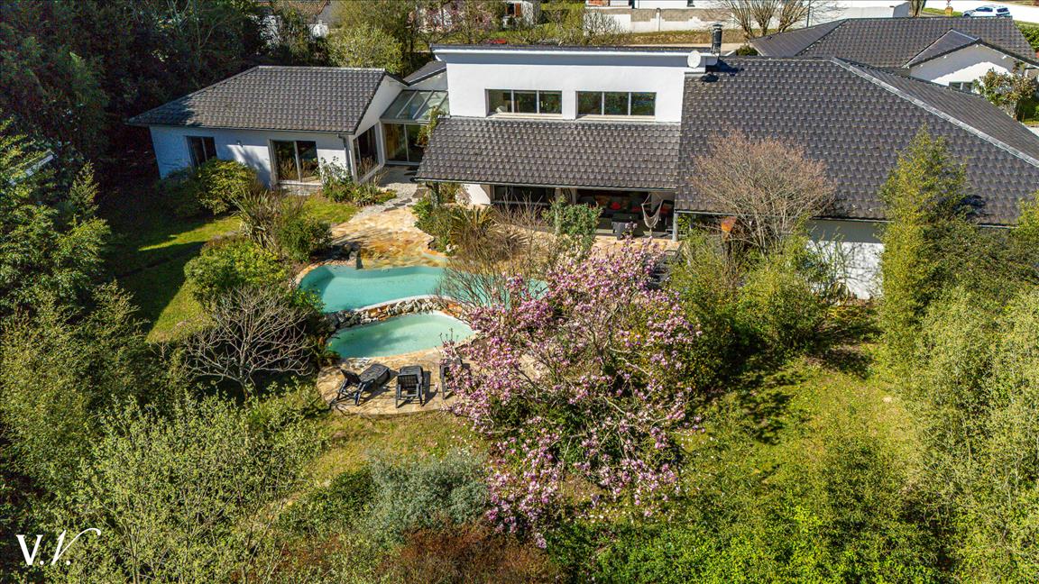 1 100 000 € HAI Ref 5-410 Nous contacterÀ seulement 10 minutes des plages, au coeur d'un environnement naturel exceptionnel, cette propriété de caractère d'environ 400 m2 habitables offre une cadre de vie rare. Dès l'entrée, la maison séduit par ses volumes spectaculaires, notamment un vaste séjour baigné de lumière bénéficiant d'une impressionnante hauteur sous plafond. À l'extérieur, la piscine s'ouvre sur une superbe forêt, offrant une sensation d'intimité et de sérénité incomparable. La propriété dispose également de deux dépendances, dont une entièrement habitable, idéale pour recevoir ou envisager un projet d'accueil. Une propriété rare, alliant charme, nature et proximité de l'océan.