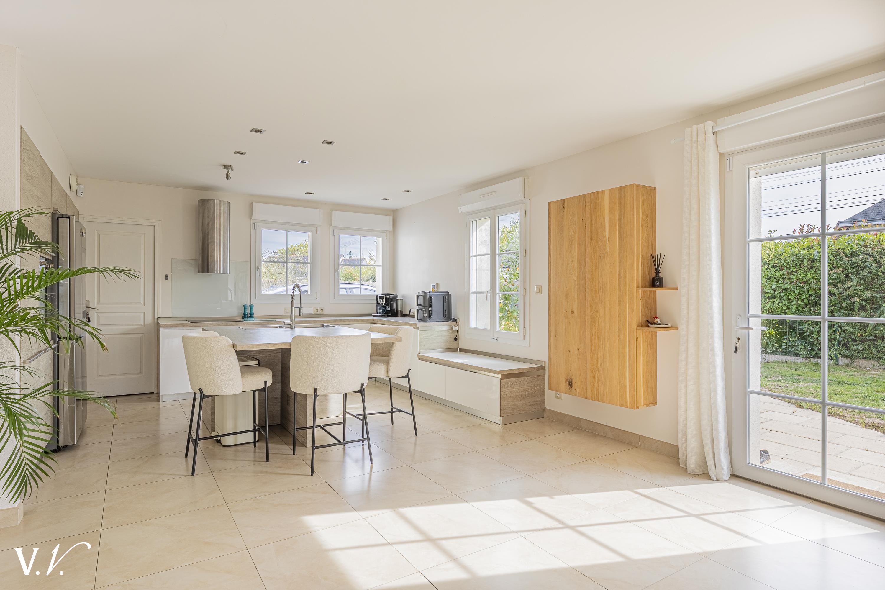 738 500 € HAI Ref 6-267 Nous contacter1km du bourg de BALLAN, 10mn de TOURS Cette maison parfaitement entretenue offre un cadre de vie agréable et haut de gamme, à proximité de toutes commodités. Elle se compose d’une spacieuse pièce de vie, lumineuse de 90m², incluant une vaste cuisine aménagée et équipée de qualité, idéale pour les moments partagés. Une vie de plain pied confortable est possible grâce à la suite parentale en RDC. A l'étage : 4 belles chambres, une salle de bains et une immense mezzanine. Grand garage pour un véhicule et du rangement, joli jardin arboré, agrémenté d'une terrasse avec pergola et piscine. Aucun travaux à prévoir, vous pouvez poser vos valises immédiatement.