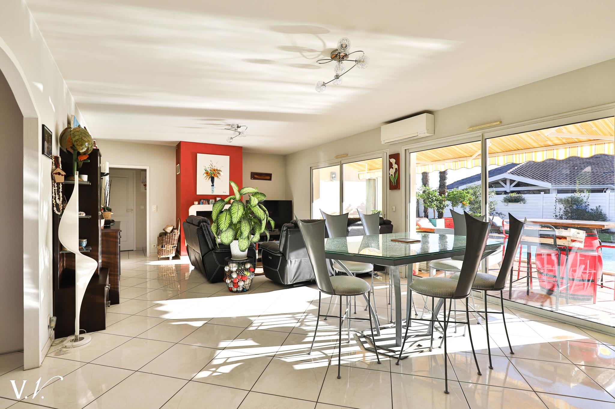 1 149 500 € HAI Ref 5-285Située au cœur du village, dans un environnement calme, cette villa de plain-pied propose un cadre de vie privilégié avec une belle pièce de vie lumineuse, idéale pour des moments de convivialité, complétée par une cuisine ouverte fonctionnelle et accueillante. Elle s’ouvre sur une parcelle de plus de 900 m² aménagée et agrémentée